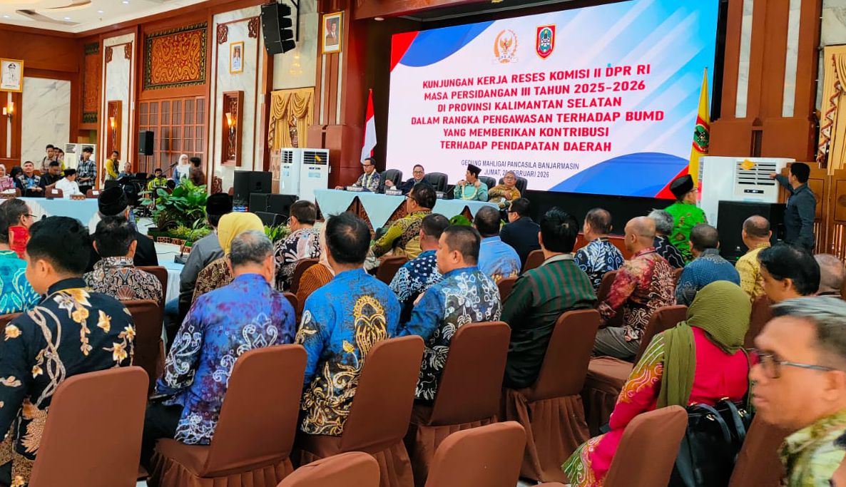 BANJARMASIN, InfoPublik - Bappedalitbang Kabupaten Banjar yang diwakili langsung oleh Kepala Badan Nashrullah Shadiq bersama kepala Bappeda kabupaten/kota turut menghadiri Rapat Kunjungan Kerja Reses Komisi II DPR RI Masa Persidangan III Tahun Sidang 2025–2026 di Provinsi Kalimantan Selatan.