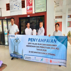 Penyerahan SPPT PBB-P2 tersebut diterima oleh Karyadi, staf Kecamatan Sungai Pinang, sebagai tindak lanjut pendistribusian dokumen pajak kepada desa-desa di wilayah Kecamatan Sungai Pinang.