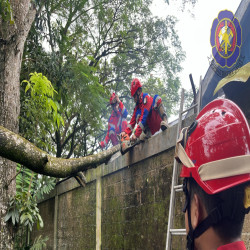 Kabid Pemadaman Penyelamatan dan Sapras M. Kasyaf R mengatakan batang pohon sempat membuat panik seisi rumah dan menggangu aktivitas sekolah sebelum tim Rescue Dinas Damkar berhasil membersihkan.