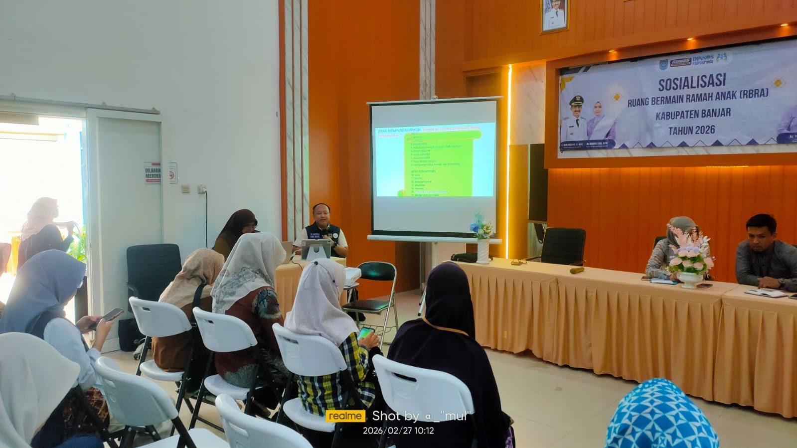 Kegiatan ini dibuka secara resmi oleh Kepala Dinas Sosial P3AP2KB Kabupaten Banjar, Dr. Hj. Erny Wahdini, S.Pd., M.Pd. Turut hadir sebagai narasumber dari DP3AKB Provinsi Kalimantan Selatan, yakni Kepala Bidang Pemenuhan Hak Anak, Andrian Anwary, S.Sos., M.AP. Peserta yang mengikuti sosialisasi terdiri dari perwakilan SKPD, pihak kecamatan, serta pengembang kawasan perumahan di Kabupaten Banjar.