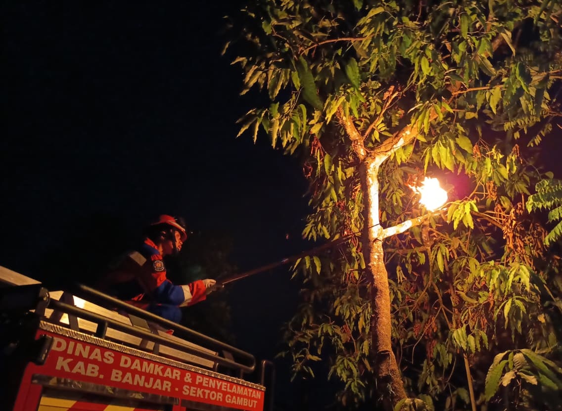 BANJAR, InfoPublik - Dinas Pemadam Kebakaran dan Penyelamatan (DPKP) Kabupaten Banjar Sektor Gambut kembali melakukan penanganan terhadap sarang Lebah Madu di Jalan Irigasi Komplek Pesona Asri Desa Malintang Lama Kecamatan Gambut, Jumat (27/2/2026) malam.