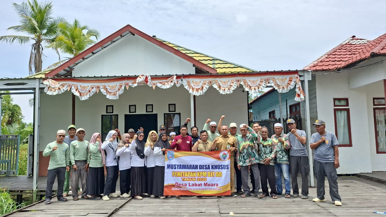 Aluh Aluh, Info Publik - Pemerintah Desa Labat Muara melaksanakan Musyawarah Desa Khusus (Musdesus) Penetapan Keluarga Penerima Manfaat (KPM) Bantuan Langsung Tunai Dana Desa (BLT DD) Tahun Anggaran 2026. bertempat di Balai Desa Labat Muara. Kegiatan ini merupakan bagian dari tahapan penting dalam memastikan penyaluran bantuan sosial dari Dana Desa berjalan tepat sasaran, transparan, dan akuntabel. (Selasa,3/3/2026)