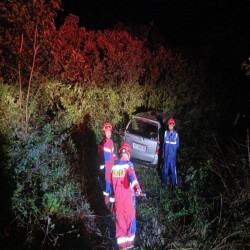 Petugas Damkar Banjar membantu mengevakuasi mobil tersebut menggunakan Unit Rescue. Evakuasi saat ini mudah karena jalan dan sekitar cukup luas untuk manuver.
