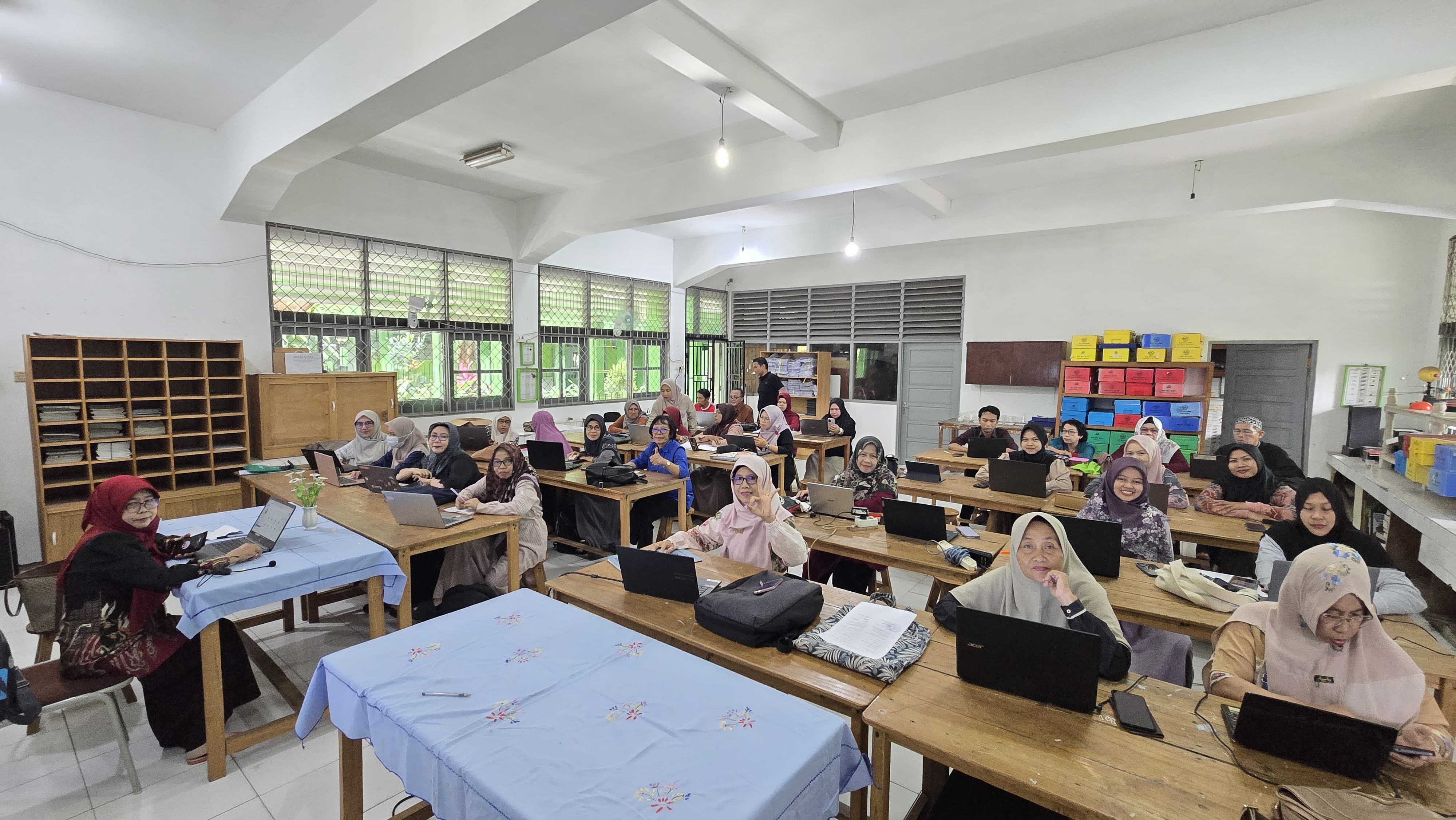 Dalam sesi digitalisasi pembelajaran, Maulida Yuniarti, M.Pd. memperkenalkan penggunaan Papan Interaktif Digital (PID) dan platform Ruang Murid untuk menciptakan pembelajaran interaktif, kolaboratif, dan menarik bagi peserta didik di era digital.Peserta juga berkesempatan melakukan simulasi penggunaan teknologi dan aplikasi E-Kinerja.