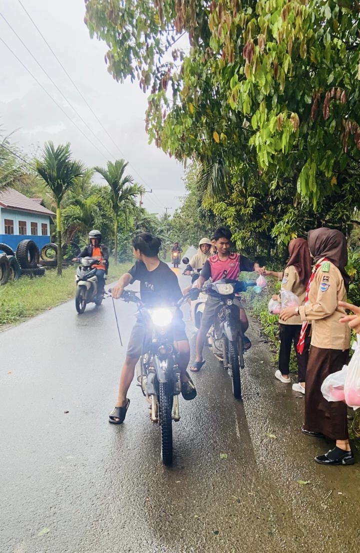 Jumat Berkah Ramadhan, Pramuka SMK 1 Sungai Pinang Rutin Bagikan Takjil