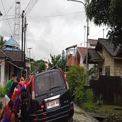 MARTAPURA, InfoPublik - Sebuah mobil SUV terperosok di Gg.Anggrek No.13 Sungai Paring Kecamatan Martapura Kabupaten Banjar, Rabu (11/3/2026) pagi.