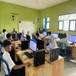 Ketua Pelaksana Gladi Bersih TKA, Afrina Ruaida menjelaskan bahwa pelaksanaan kegiatan disesuaikan dengan kapasitas ruang laboratorium komputer yang tersedia di sekolah.