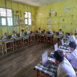 Operator sekolah, Nailan Azzati, memberikan dukungan teknis untuk memastikan proses kegiatan berjalan lancar. Meski ada sedikit kendala, semua dapat teratasi dengan baik.