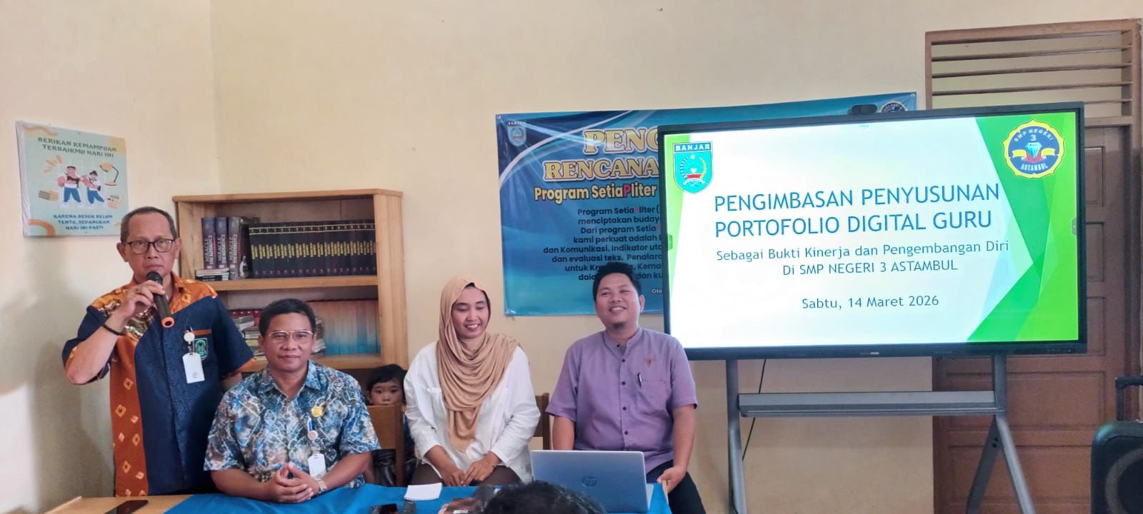 Astambul, InfoPublik — SMP Negeri 3 Astambul (SPEN_TIAS) menggelar kegiatan pengimbasan pelatihan penyusunan portofolio digital bagi seluruh guru (Sabtu, 14/3/2026). Kegiatan ini dilaksanakan sebagai upaya memperkuat kompetensi guru dalam mendokumentasikan kinerja dan pengembangan profesional melalui media digital.