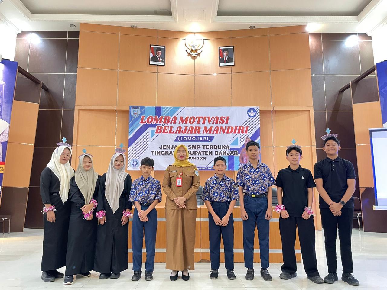 Simpang Empat, InfoPublik – Aula KH. Kasyful Anwar Dinas Pendidikan Kabupaten Banjar menjadi saksi bisu ketatnya persaingan dalam ajang Lomba Motivasi Belajar Mandiri (LOMOJARI) yang digelar pada Senin, 16 Maret 2026. Kompetisi bergengsi ini diikuti oleh enam SMP Terbuka yang ada di Kabupaten Banjar, mulai dari SMP Terbuka Simpang Empat, SMP Terbuka Astambul, SMP Terbuka Sungai Pinang, SMP Terbuka Aluh-aluh, SMP Terbuka Martapura Timur, hingga SMP Terbuka Karang Intan. Suasana perlombaan berlangsung dengan khidmat dan penuh kekhusyukan, mencerminkan nilai-nilai kedisiplinan yang menjadi kunci utama dalam membentuk pribadi berkualitas.