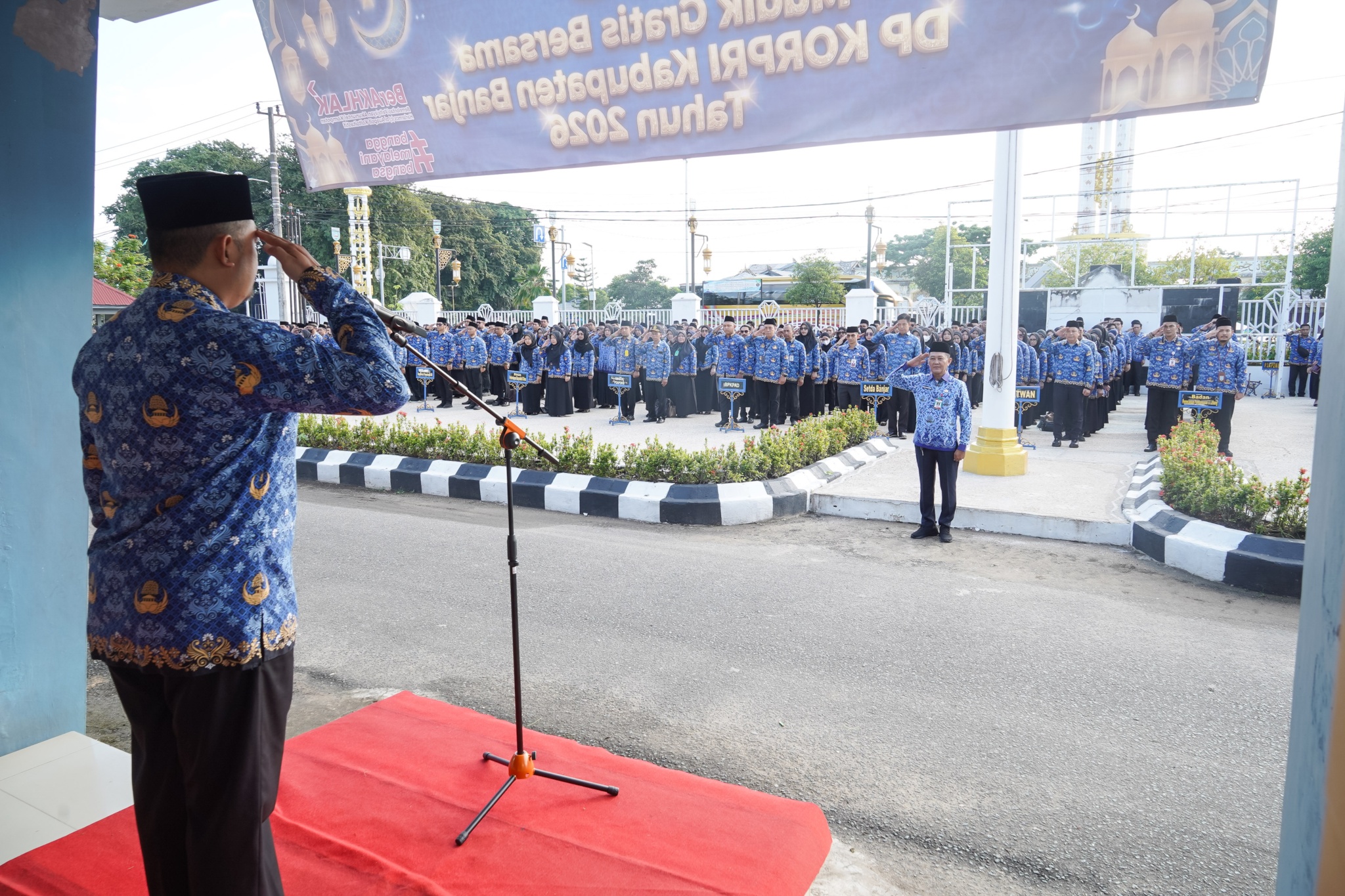 Pemerintah Kabupaten Banjar melaksanakan Apel Hari Kesadaran Nasional menjelang liburan Hari Raya Idul Fitri 1447H, dihadiri Sekretaris Daerah Kabupaten Banjar Yudi Andrea, SKPD lingkup Pemerintah Kabupaten Banjar serta lainnya, di halaman Kantor Pemerintah Kabupaten Banjar, Martapura. Selasa (17/3).
