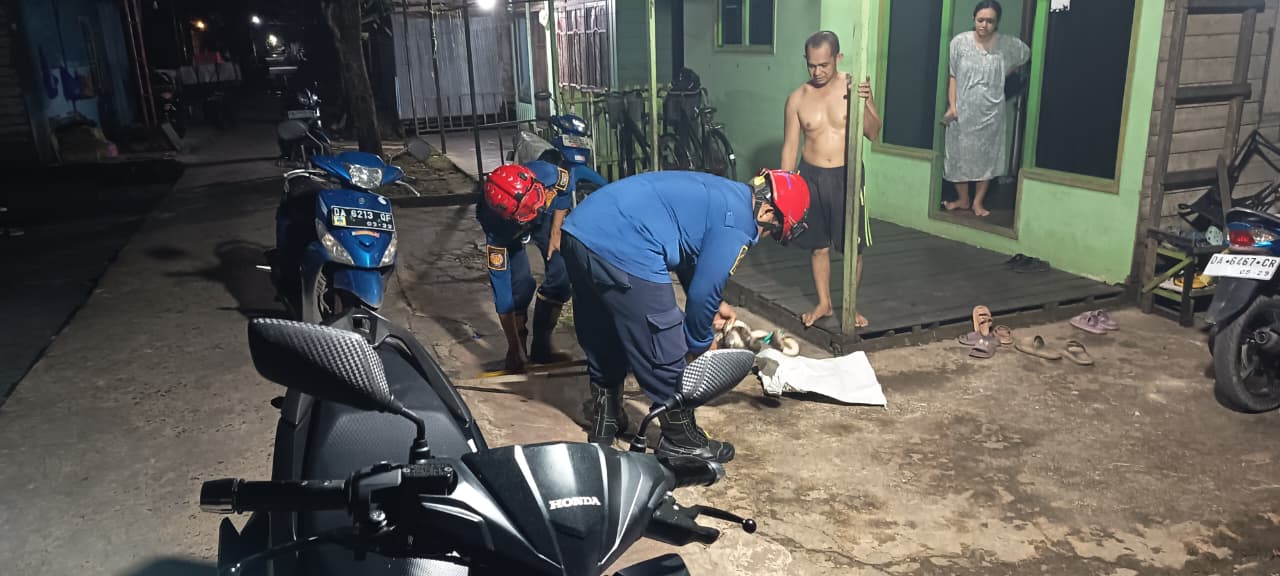 Petugas Damkar Banjar Sektor Gambut berhasil menangkap ular phyton/sanca batik berukuran ± 2 meter, di Jalan Ahmad Yani KM 14,200 Gang Mulia RT 18 RW 6 Kelurahan/Kecamatan Gambut, Kamis (19/3/2026)