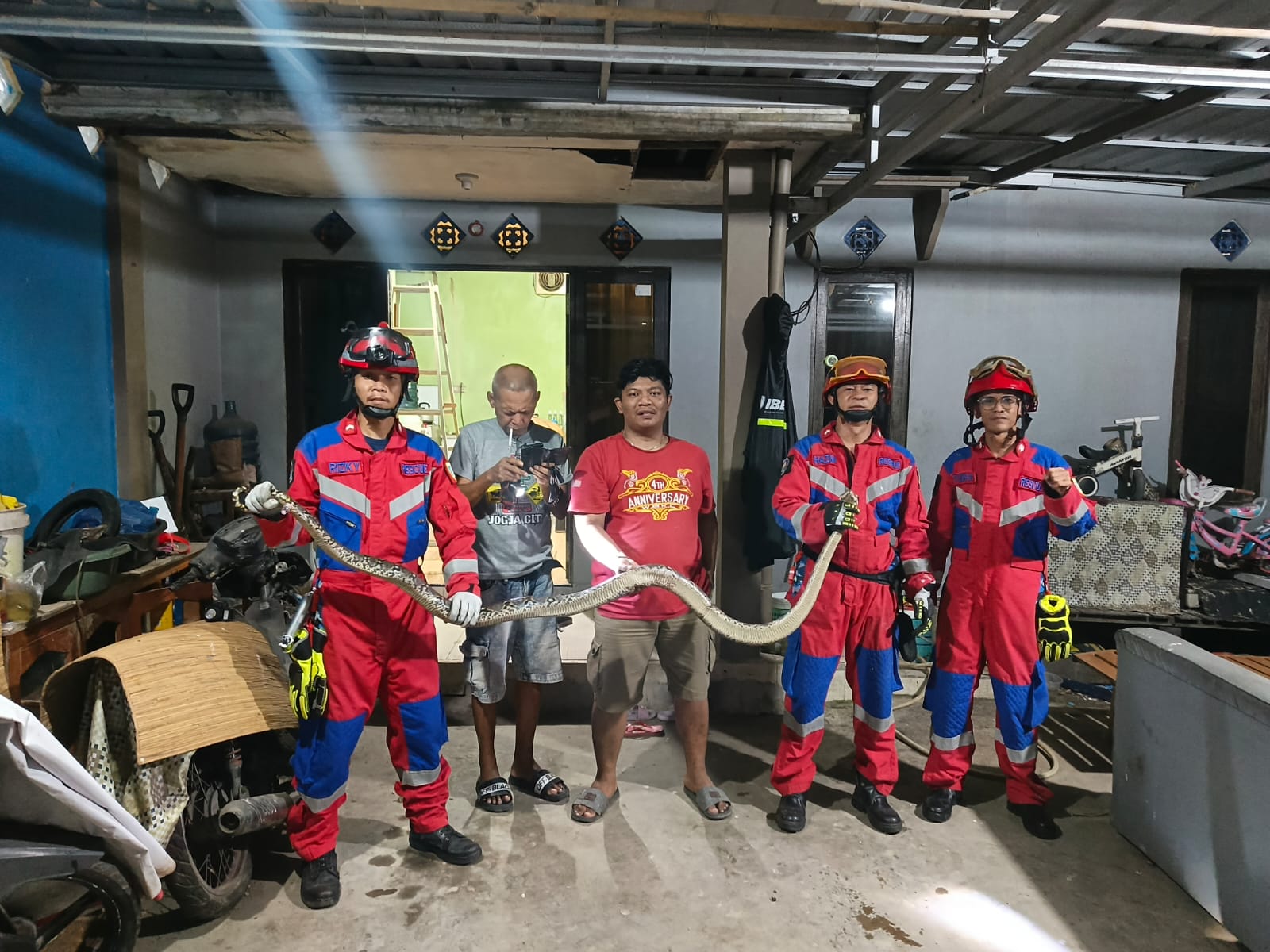 "Setelah sampai dilokasi, karena aksen susah, Petugas berkoordinasi dengan pemilik rumah untuk melakukan proses pembongkaran plafon kemudian melakukan penanganan. Kami berhasil menangkap ular sanca batik selesai penanganan pukul 2:28 wita," tutur dia.