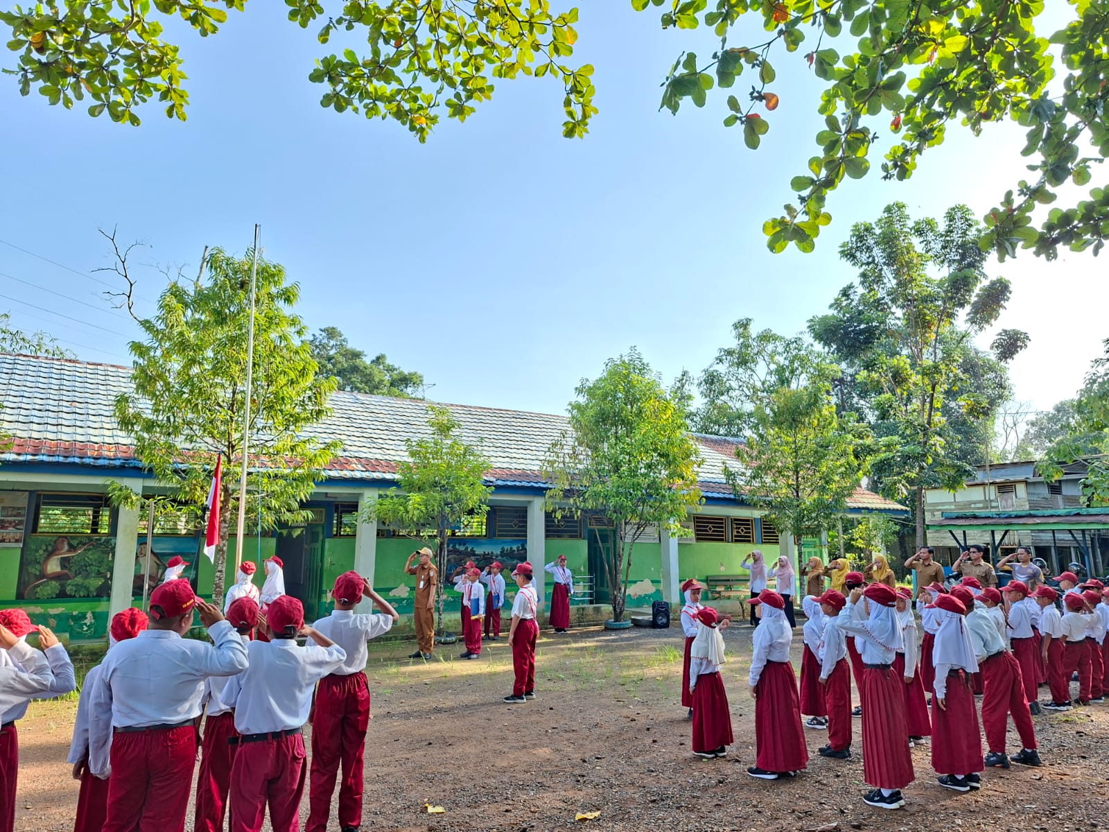 Upacara Bendera Perdana Pasca Idul Fitri di SD Negeri Danau Salak 2 Berlangsung Khidmat
