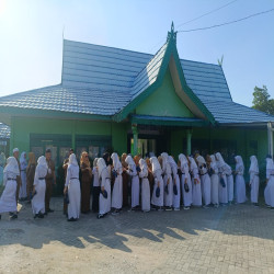 Setelah apel, kegiatan berlanjut dengan halal bihalal dalam rangka memperingati Hari Raya Idul Fitri 1 Syawal 1447 H. Suasana hangat dan penuh kebersamaan terlihat saat para siswa bersalaman dengan guru, saling memaafkan, dan mempererat tali silaturahmi antarwarga sekolah.
