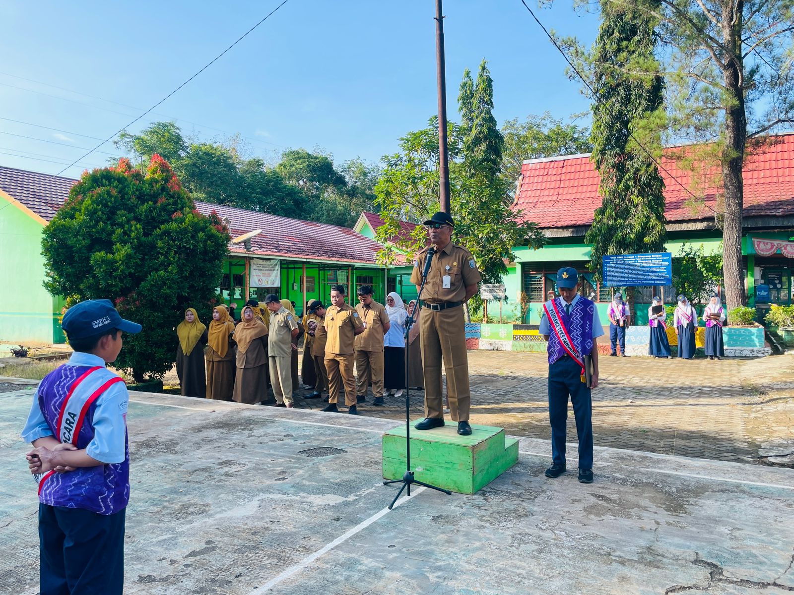 “Setelah libur panjang, mari kita mulai kembali kegiatan belajar dengan semangat baru. Jadikan sekolah sebagai tempat yang aman, nyaman, dan menyenangkan,” ujarnya di hadapan seluruh siswa dan tenaga pendidik.