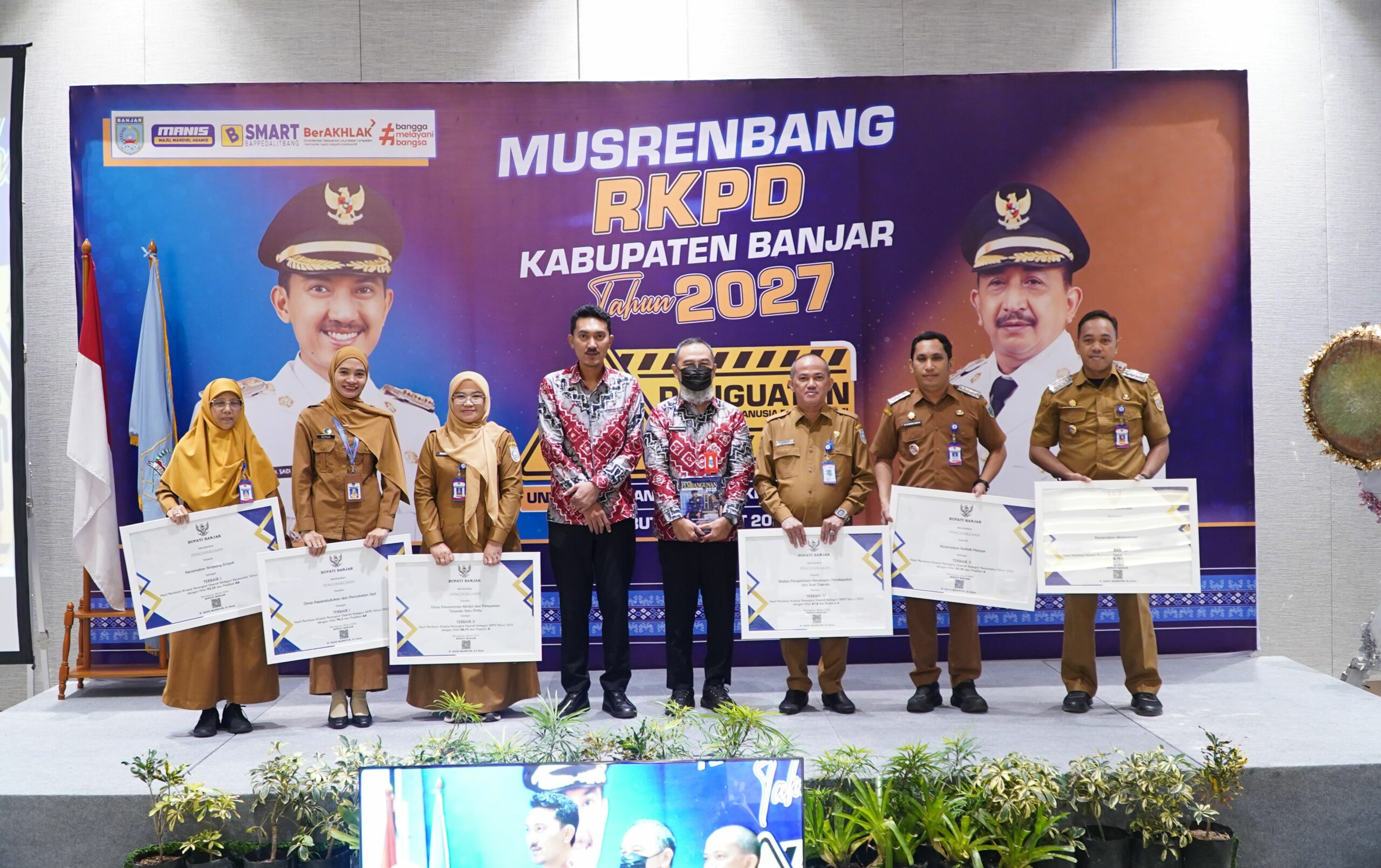 Pada kesempatan tersebut, Bupati Banjar juga memberikan apresiasi kepada beberapa perangkat daerah yang meraih Penghargaan Penilaian Kinerja Perangkat Daerah Tahun 2025, baik dari entitas badan, dinas, sekretariat maupun kecamatan dengan capaian kinerja terbaik.
