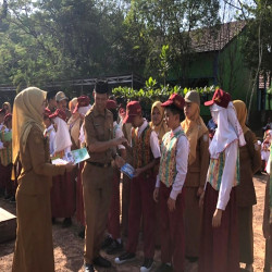 Kasi Kurikulum SD Serahkan Buku 7 Kebiasaan Anak Indonesia Hebat di SDN Cindai Alus 2