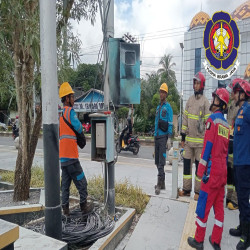 Sempat memercikkan api, sebuah Meteran PJU di.Jalan Ahmad Yani KM 40 Nomor 38 Dekranasda Kab Banjar, Rabu (1/4/2026) sore dipadamkan petugas Dinas Pemadam Kebakaran dan Penyelamatan (DPKP) Kabupaten Banjar.