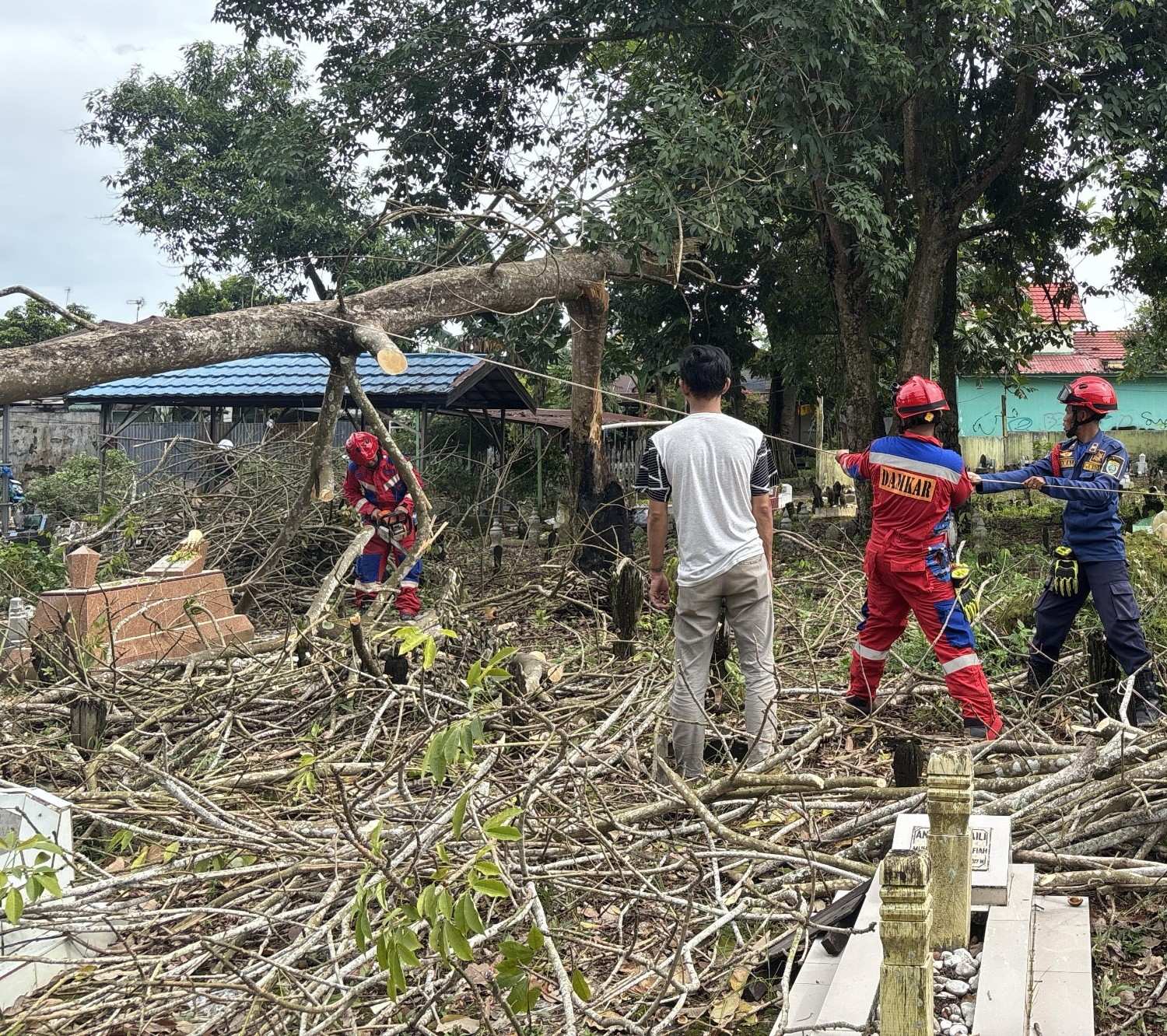 Pohon tumbang terjadi di Jalan Ahmad Yani Gang Family Kelurahan Keraton Kecamatan Martapura Kuburan Muslimin Belakang SMA Muhammadiyah, Jumat (3/4/2026) sore.