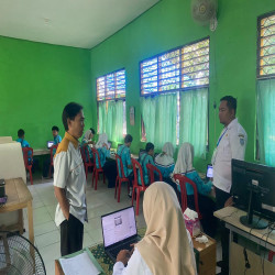 Dalam kunjungannya, Bapak Saini meninjau langsung pelaksanaan ujian berbasis daring yang dipusatkan di Ruang 1 dan Ruang 2. Ia memastikan kesiapan sarana dan prasarana, khususnya terkait kestabilan jaringan internet serta kenyamanan peserta didik selama mengikuti ujian numerasi.