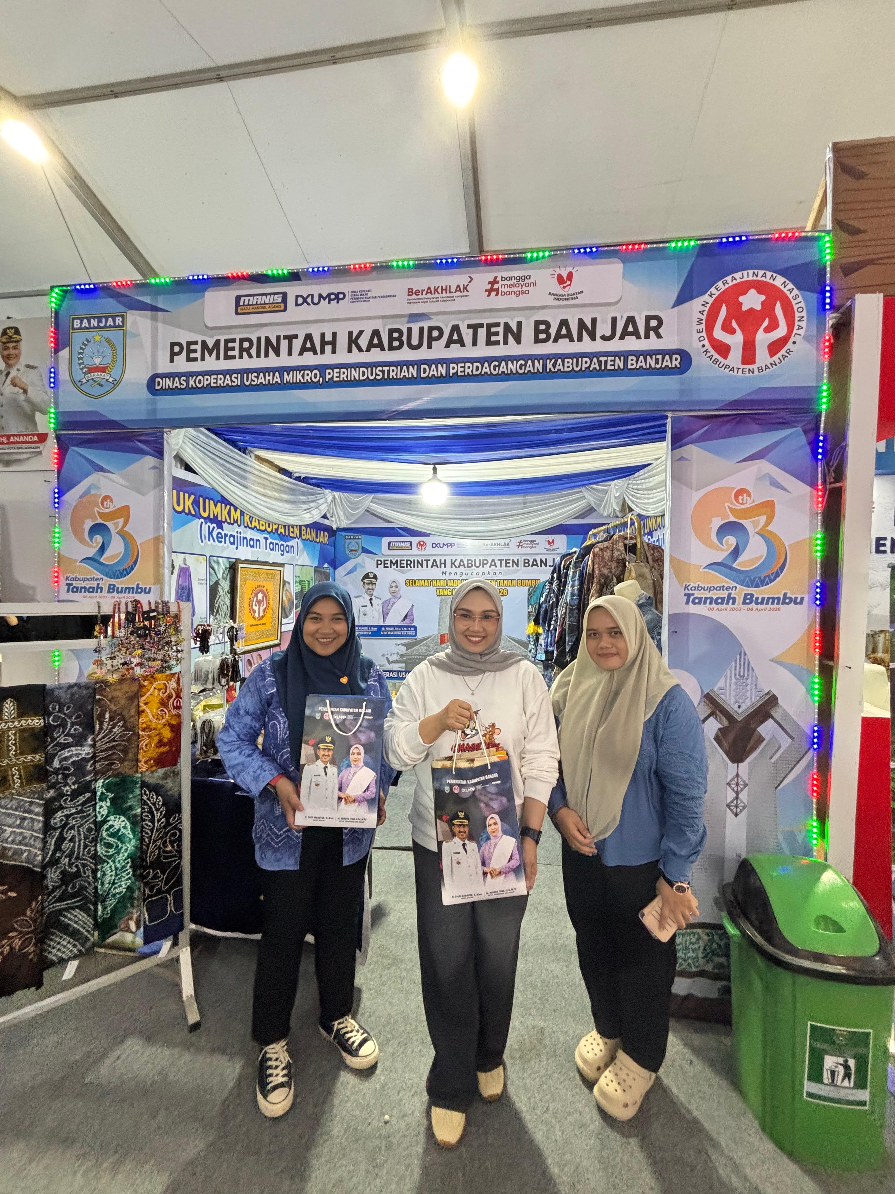 Dalam rangkaian kegiatan “Tanbu BerAksi Expo” yang digelar untuk memeriahkan peringatan Hari Jadi Kabupaten Tanah Bumbu, Ketua Dekranasda Kabupaten Tanah Bumbu ibu Andi Irmayani Rudy Latif melakukan kunjungan ke Stand-stand expo yang ada dalam kegiatan tersebut. Stand Pemerintah Kabupaten Banjar menjadi salah satu stand yang dikunjungi beliau (selasa, 7 April 2026)