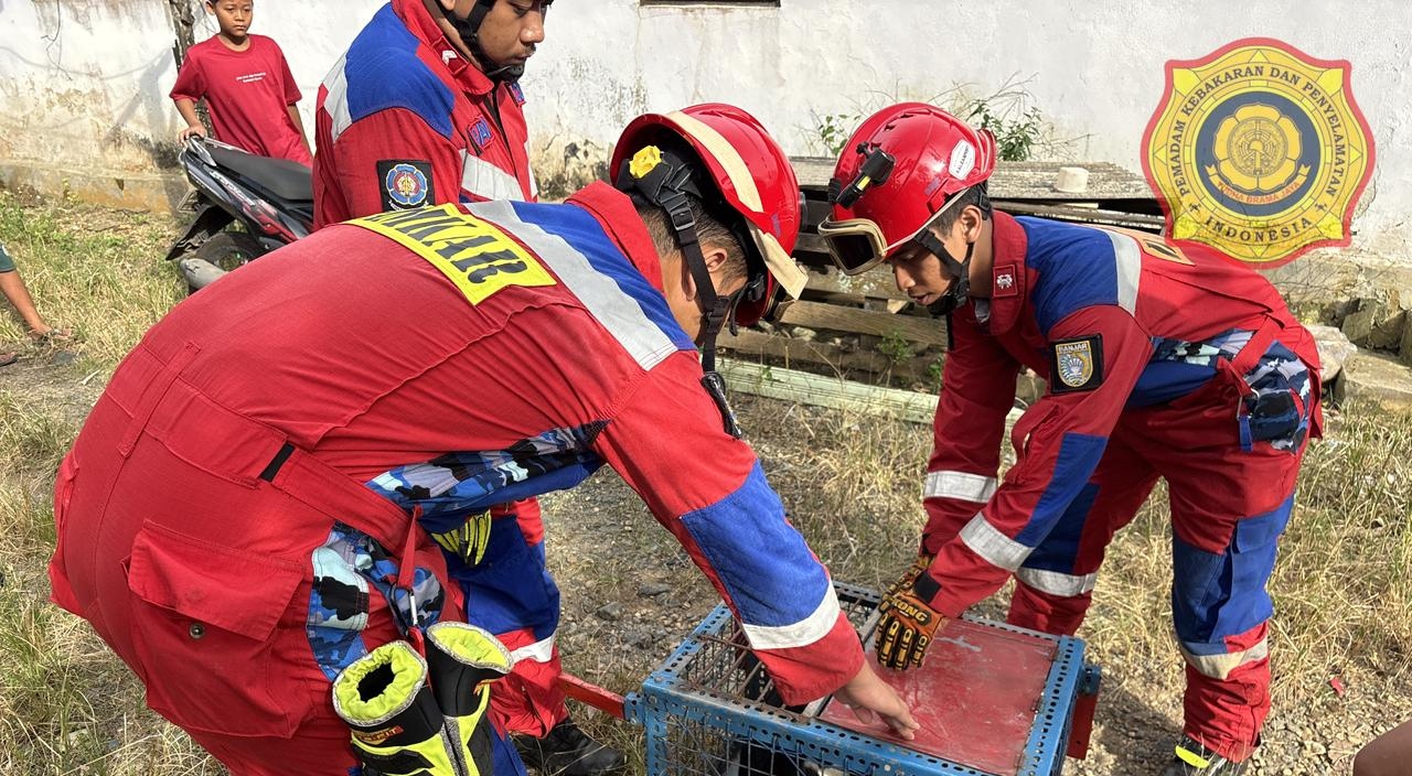 Sejumlah personel damkar diterjunkan untuk evakuasi anjing tersebut. Butuh waktu sekitar ± 20 menit bagi petugas untuk evakuasi seekor anjing.