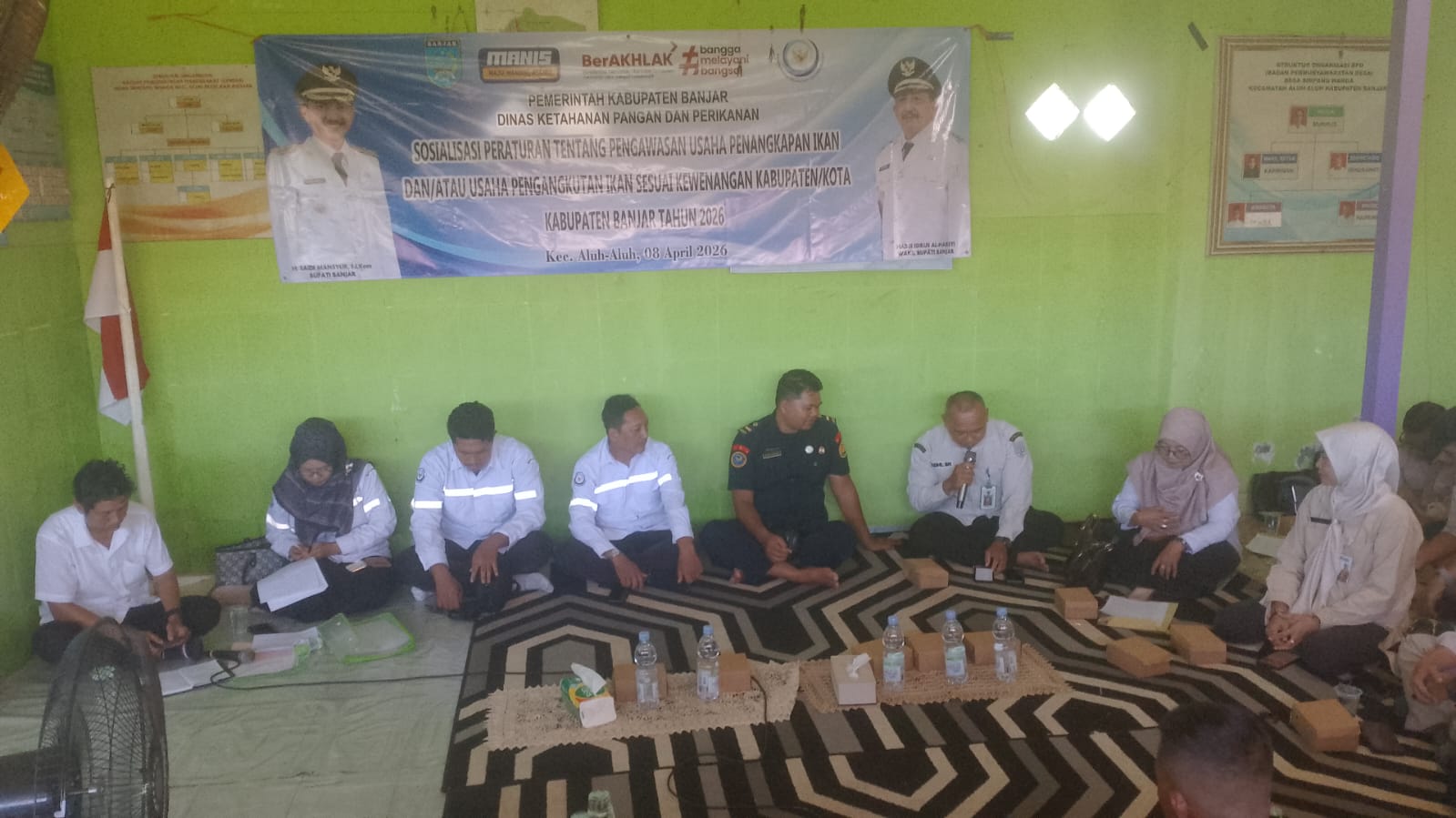 Aluh-Aluh, Info Publik – Dalam rangka meningkatkan kepatuhan pelaku usaha penangkapan ikan terhadap peraturan perundang-undangan, Dinas Ketahanan Pangan dan Perikanan Kabupaten Banjar melaksanakan kegiatan sosialisasi pengawasan usaha penangkapan ikan dan/atau usaha pengangkutan ikan, bertempat di Kantor Desa Simpang Warga, Kecamatan Aluh-Aluh.pada Rabu (08/04/2026) Pagi