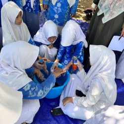 Kegiatan diikuti oleh peserta didik dari kelas VII, VIII, dan IX yang dibagi ke dalam delapan kelompok. Setiap kelompok mendapatkan pendampingan langsung dari guru selama proses berlangsung. Suasana penuh semangat dan keceriaan tampak dari antusiasme siswa dalam mengekspresikan kreativitas mereka melalui pembuatan kain sasirangan.