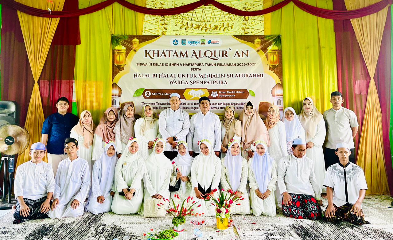 Martapura, InfoPublik – SMP Negeri 4 Martapura (Spenpatpura) menggelar kegiatan Khatam Al-Quran massal sekaligus Halalbihalal yang diikuti oleh seluruh siswa kelas IX beserta orang tua atau wali murid pada Sabtu (18/04/2026). Kegiatan berlangsung khidmat di lingkungan sekolah dengan mengusung tema “Halalbihalal untuk Menjalin Silaturahmi Warga Spenpatpura.”