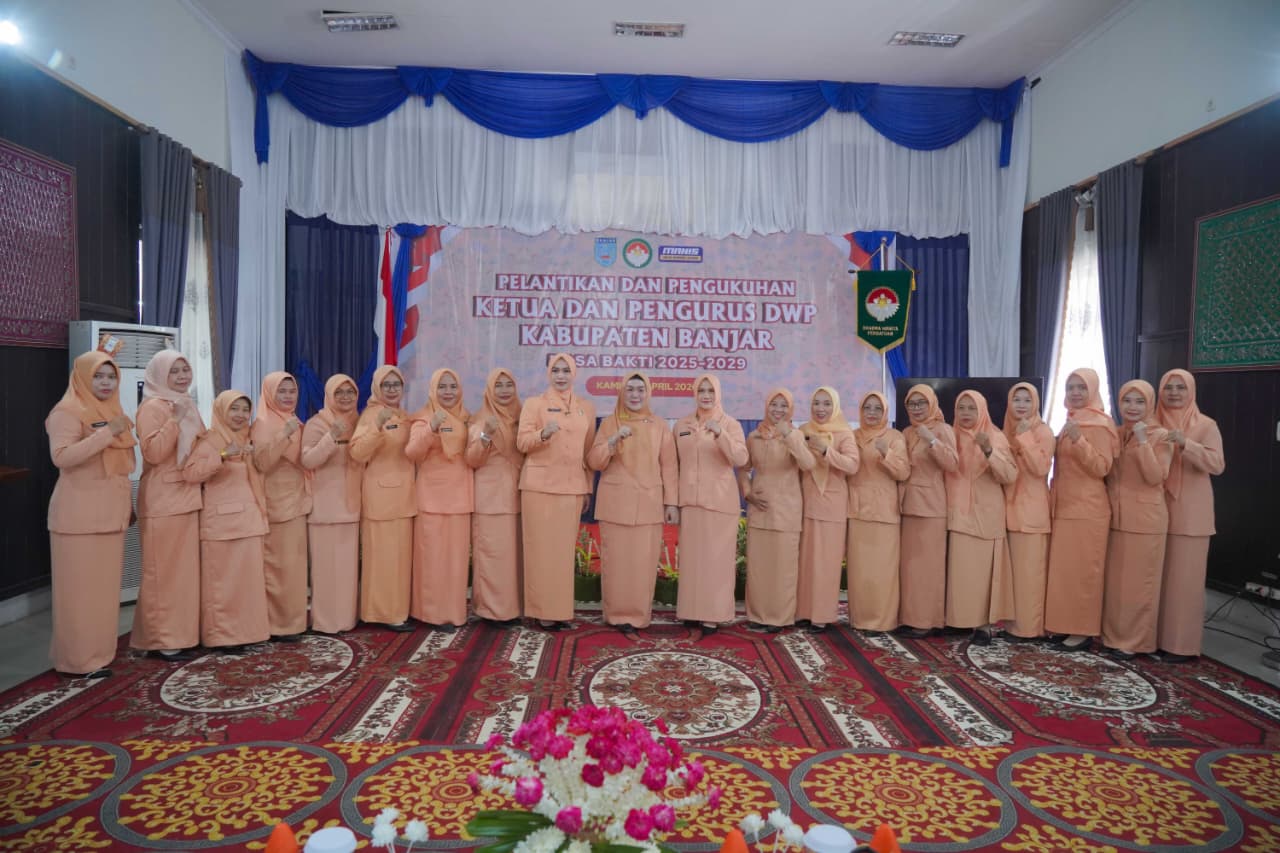 Kegiatan tersebut berlangsung khidmat dan dihadiri oleh jajaran Dharma Wanita Persatuan dari berbagai tingkatan, termasuk Ketua DWP Provinsi Kalimantan Selatan, Ny. Masrupah Syarifuddin, yang turut memberikan dukungan dalam prosesi pelantikan.
