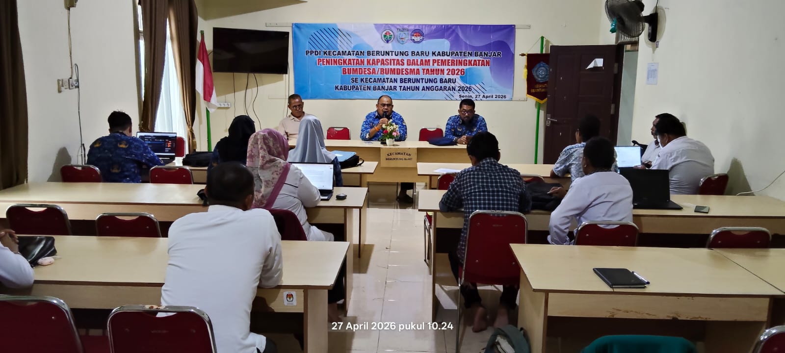 Persatuan Perangkat Desa Indonesia (PPDI) Kecamatan Beruntung Baru menggelar kegiatan Peningkatan Kapasitas Pemeringkatan BUMDes/BUMDesma se-Kecamatan di Aula Kecamatan Beruntung Baru, Senin (27/4/2026).