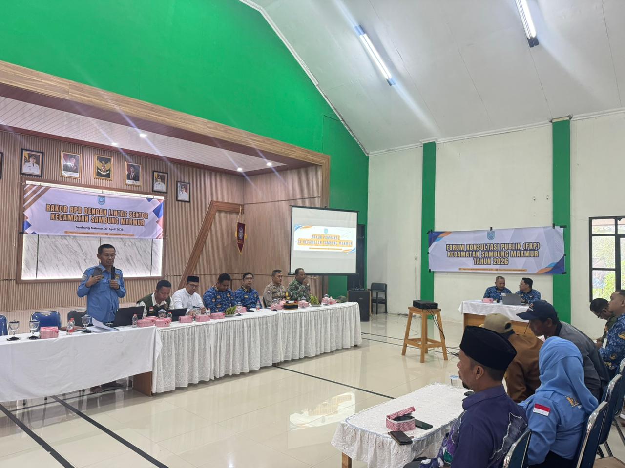 Sambung Makmur-Senin, 27 April 2026, bertempat di Aula Kecamatan Sambung Makmur, telah dilaksanakan Rapat Koordinasi Badan Permusyawaratan Desa (BPD) dengan lintas sektor se-Kecamatan Sambung Makmur. Kegiatan ini bertujuan untuk memperkuat sinergi dan koordinasi antara BPD dengan berbagai unsur pemerintahan serta Forkopimcam dalam mendukung pembangunan dan pelayanan masyarakat di tingkat desa.
