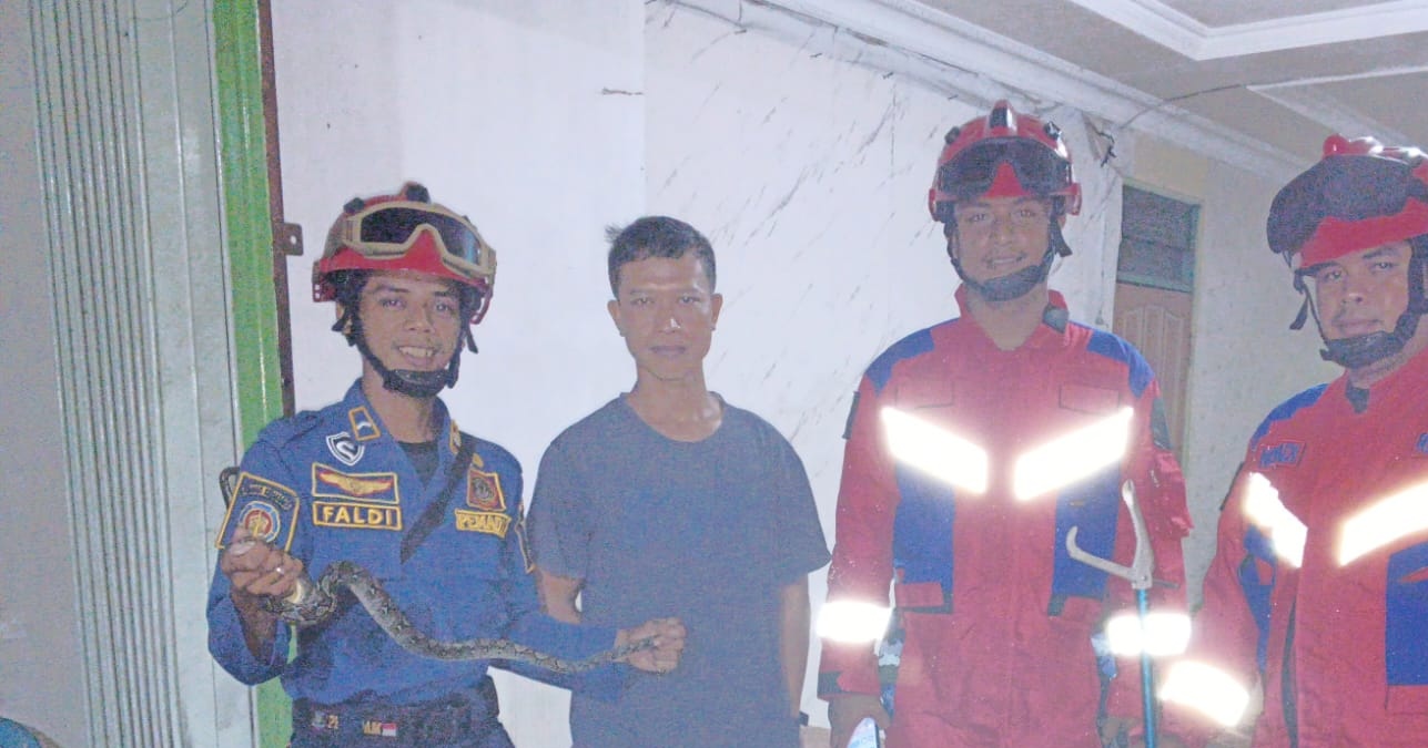 "Kami berhasil menangkap ular sanca batik selesai penanganan pukul 20:50 wita," tutur dia.